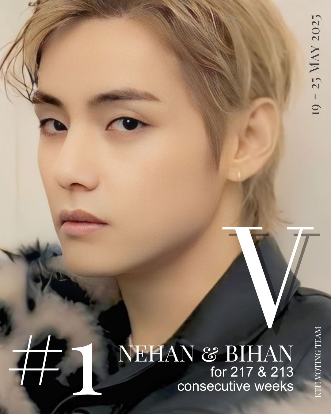 뷔는 2025년 5월 19일부터 5월 25일까지 일본 인기 아이돌 랭킹 사이트 '네한'(NEHAN)에서 실시한 남자 아이돌 랭킹 투표에서 217주 연속 1위 기록을 경신했다. 같은 기간 한국 배우 인기 랭킹 사이트 '비한'(BIHAN)의 '20대 한국 배우' 부문에서는 213주 연속 1위를 기록했다.