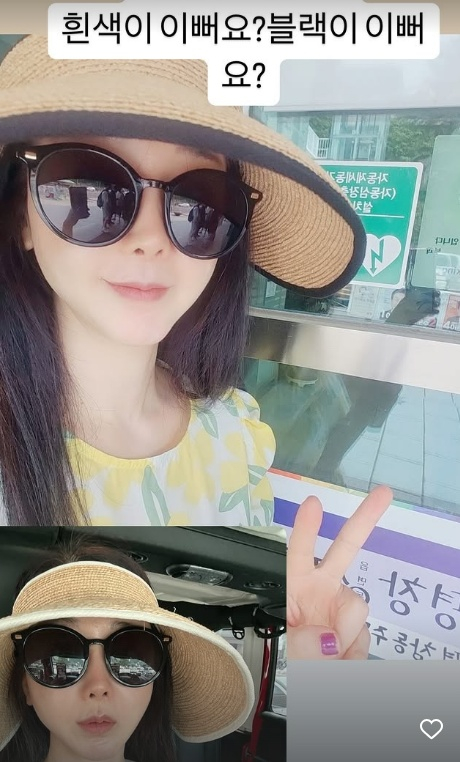 함소원은 29일 자신의 SNS에 "사전투표 완료~! 흰색이 예뻐요? 블랙이 예뻐요?"라는 글을 올렸다.