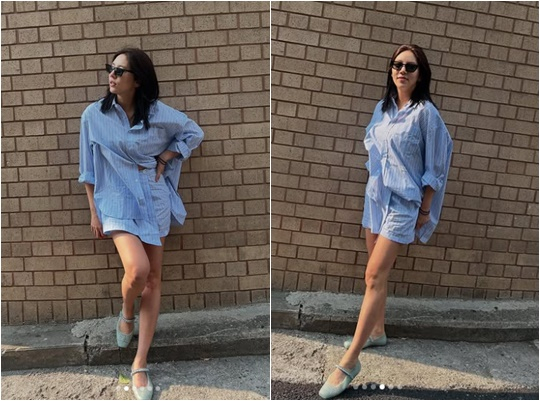또 손담비는 운둥 후 위에 셔츠를 걸치고 하의 실종 패션을 자랑하며 돋보이는 각선미를 공개했다.