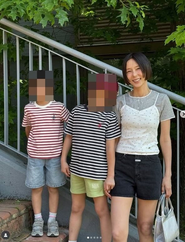 김나영은 29일 자신의 계정에 9세, 7세 두 아들과 공원에 방문한 사진을 올렸다.
