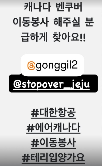 테리라는 유기견이 해외 입양을 앞둔 가운데, 캐나다 벤쿠버로 가는 이동 봉사자를 모집한다는 유기동물 후원단체를 운영자 공길언니의 글을 리그램 한 글이다.