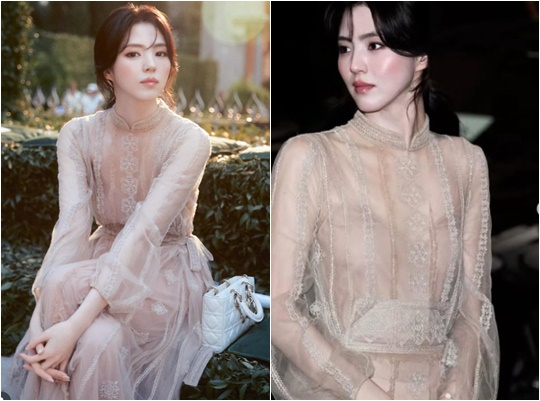 배우 한소희가 시스루 드레스를 입고 투명한 여신 미모를 뽐냈다.