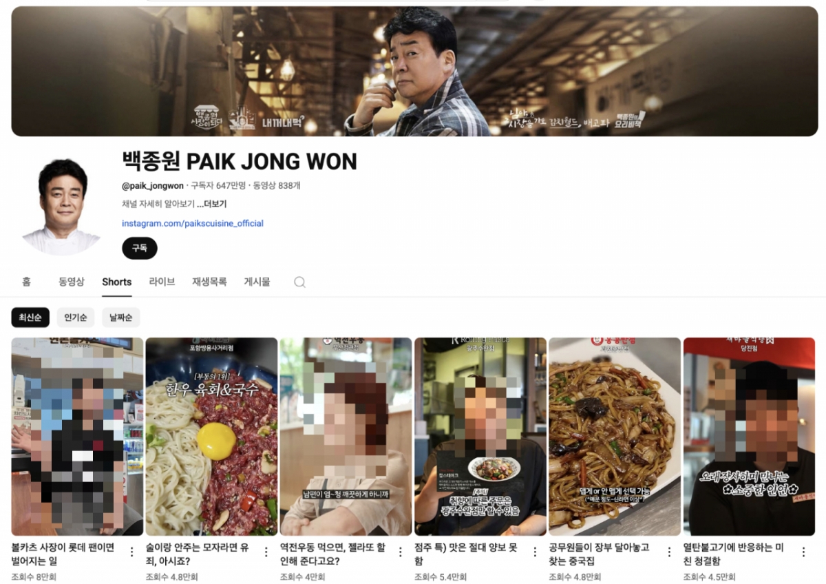 방송인 겸 더본코리아 대표 백종원이 모든 방송 활동을 중단한 가운데, 그가 운영하는 유튜브 채널에 자사 브랜드 점주들이 등장하는 쇼츠 영상이 잇따라 게재돼 이목을 끌고 있다.