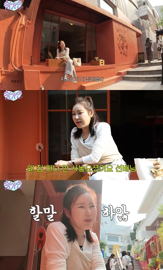 송가인은 카페 인테리어를 둘러보며 "(카페가) 다 집이었는데 개조한 거 같다"고 말했다.
