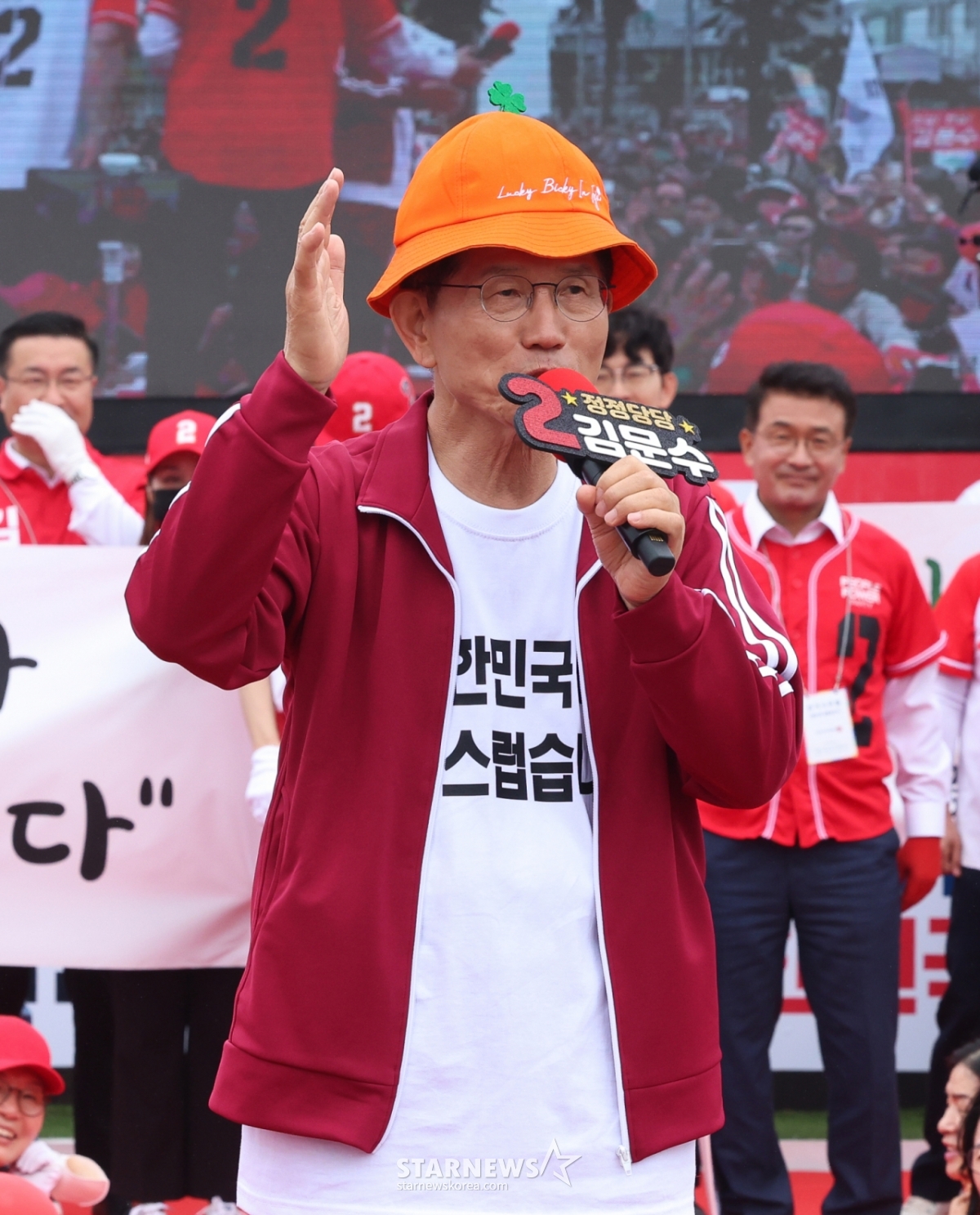 한편 김 후보는 지난 2일 제주시 동문로터리 탐라문화광장에서 지역 총괄 거점유세를 진행, '폭싹 속았수다' 속 양관식이 자주 입었던 빨간색 트레이닝복을 입고 등장했다.