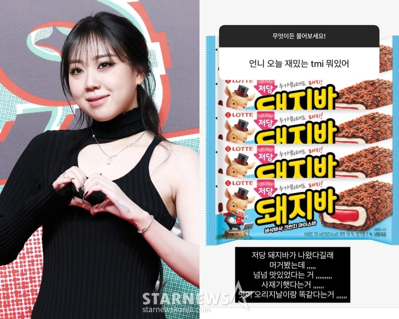 오늘의 재밌는 TMI도 공개했다. 이영지는 "저당 돼지바가 나왔다길래 먹어봤는데 너무 맛있었다는 거. 사재기했다는 거. 맛이 오리지널이랑 똑같다는 거"라고 이야기해 웃음을 자아냈다.