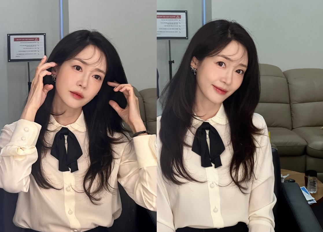 사진 속 성유리는 대기실에서 메이크업을 받고 있다.