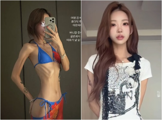 배우 고 최진실의 딸 최준희가 갈비뼈가 앙상하게 드러난 비키니핏을 공개했다.