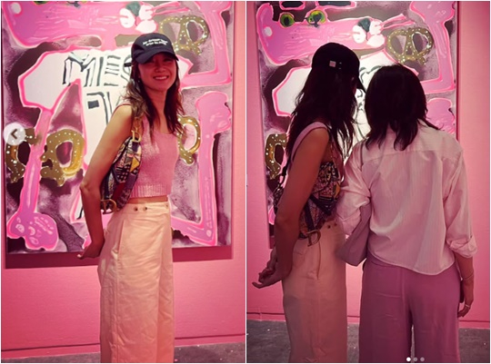 공개된 사진 속 공효진은 예술의 전달에서 열린 한 전시회를 찾은 모습. 핑크빛 그림 앞에 선 공효진은 핑크 니트 뷔스티에서 화이트 진, 모자를 매치해 캐주얼하면서도 러블리한 분위기를 풍긴다.