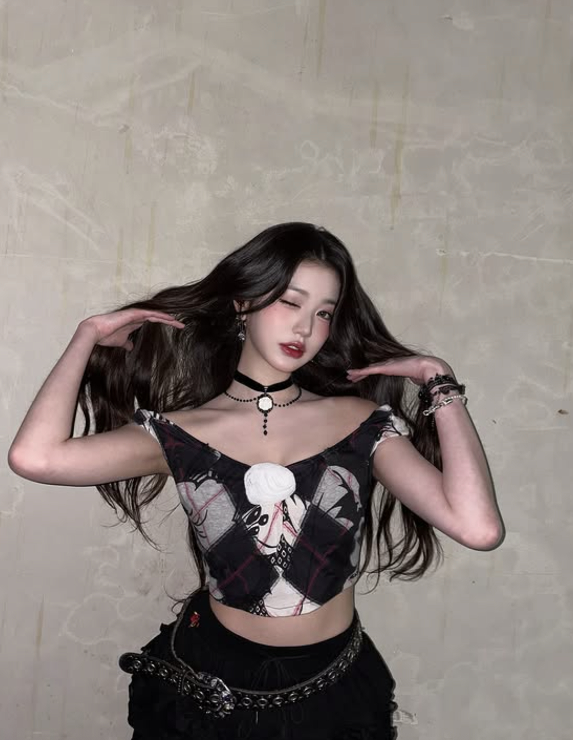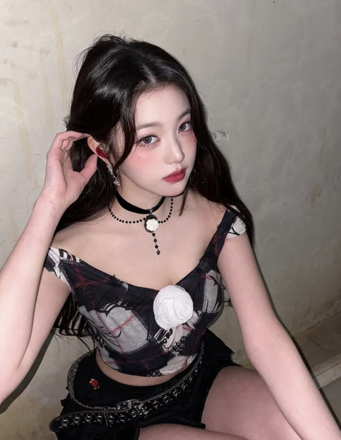 사진 속 장원영은 어깨가 드러나는 짧은 오프숄더에 잘록한 허리라인이 강조된 크롭 톱을 입고, 짧은 스커트를 매치한 블랙룩을 완벽히 소화했다. 전체적으로 과하지 않은 고딕 무드에 은은한 퇴폐미, 매혹적인 고혹미까지 더해져 '이모티콘을 입은 듯한' 비주얼을 완성했다.