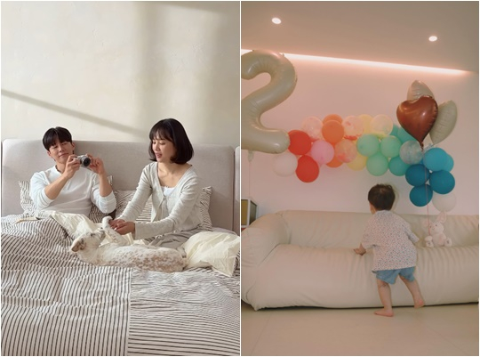 공개된 사진에는 두 돌을 맞은 아들 원 권과 생일을 준비 중인 윤승아의 모습이 담겨 있다. 아들 원 군은 자신의 생일 케이크를 직접 고사리 같은 손으로 만지며 귀여움을 자아낸다.