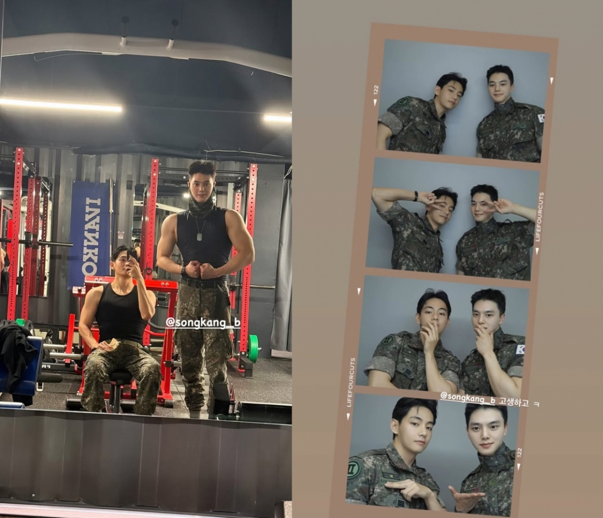 이어 군 복무 중인 배우 송강과 헬스장에서 함께 운동 중인 사진과 함께 네컷 사진을 찍은 사진을 공개하며 "고생하고"라는 글과 함께 송강의 인스타그램 계정을 태그했다.