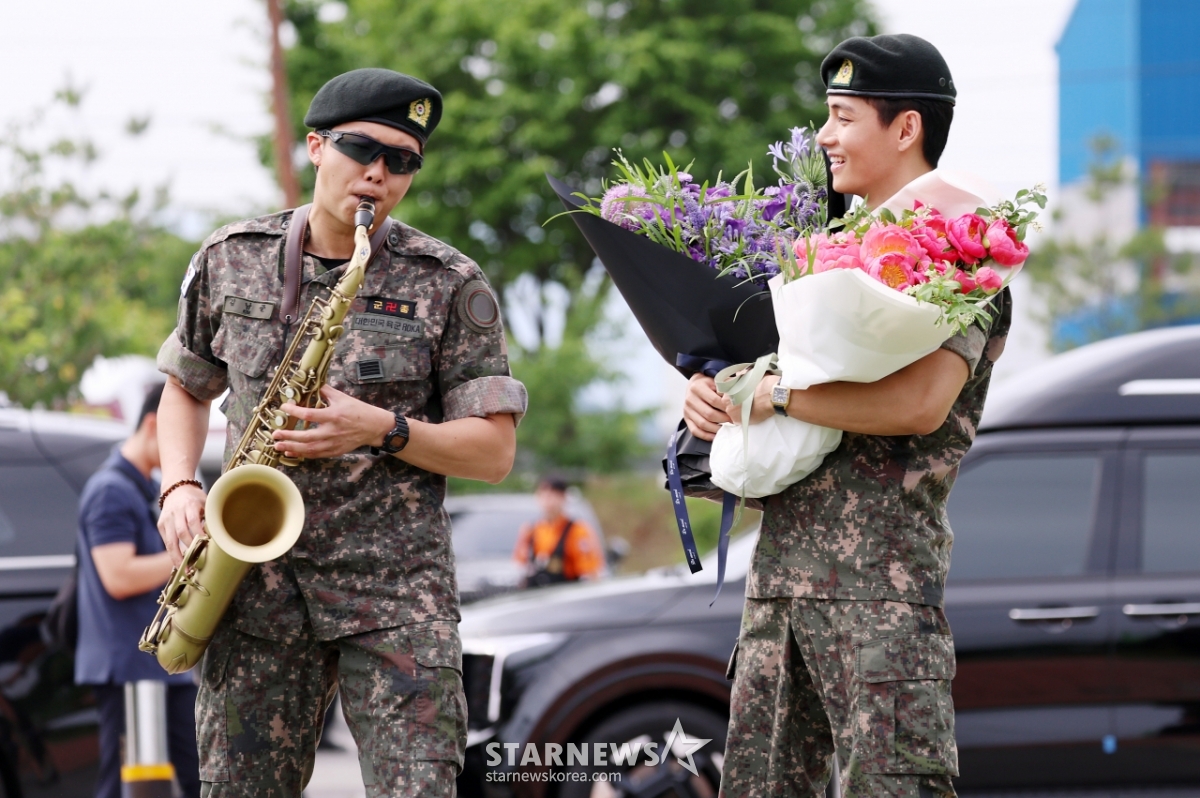 연예방송뷔, RM 색소폰 연주에 함박미소[★포토]발행 : 2025.06.10 ・ 09:34수정 : 2025.06.11 ・ 13:38춘천(강원)=김휘선 기자육군 제15보병사단 군악대로 복무한 RM, 육군 제2군단 군사경찰 특수임무대로 각 복무를 마친 뷔가 10일 오전 강원 춘천시 신북읍체육공원에 들어서고 있다./2025.06.10<저작권자 © 스타뉴스, 무단전재 및 재배포 금지>BTSRM전역강원춘천시신북읍추천 기사김휘선 기자기자홈좋아요 연예-방송의 인기 급상승 뉴스연예-방송의 최신 뉴스