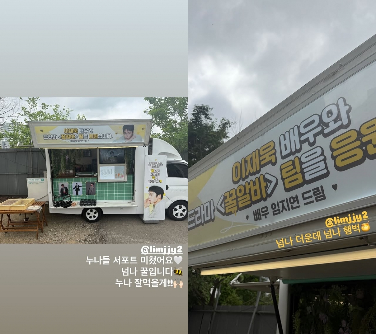 공개된 사진 속에는 임지연이 이재욱의 드라마 촬영 현장에 보낸 커피차의 모습이 담겼다. 해당 커피차에는 '이재욱 배우와 드라마 '꿀알바' 팀을 응원합니다'라는 문구가 담겼다.