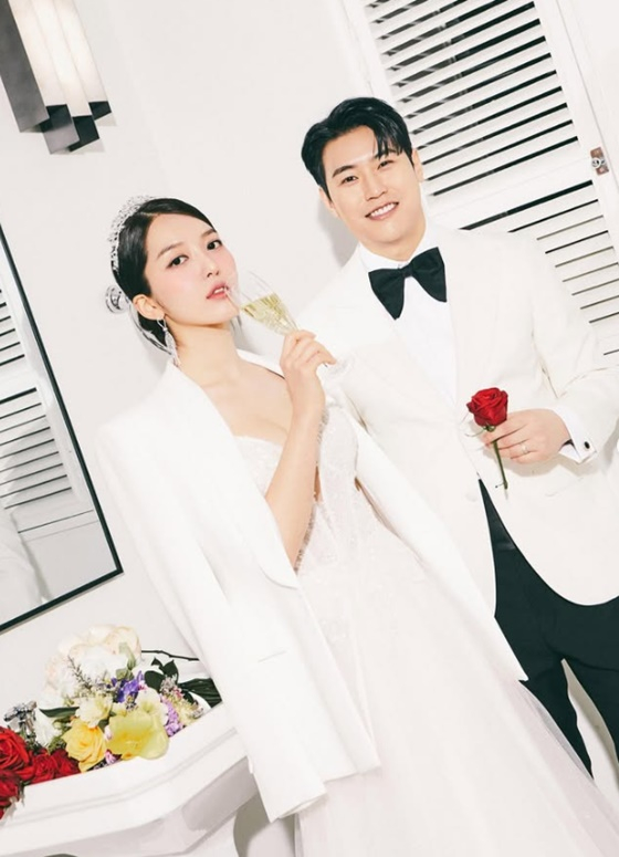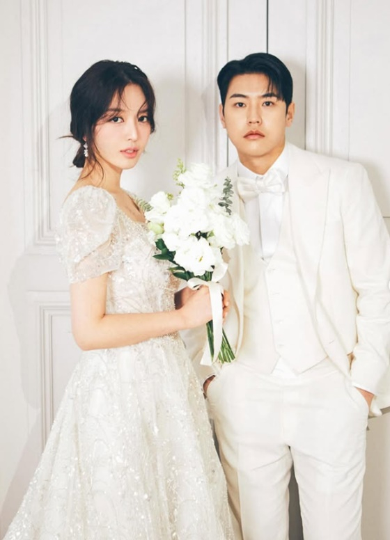 웨딩화보 속에는 훈훈한 비주얼을 자랑하는 도화와 그의 남편 모습이 담겼다.