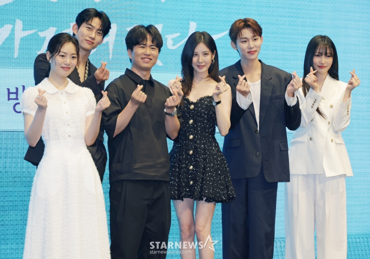 배우 권한솔, 옥택연, 이웅희 감독, 배우 서현, 서범준, 지혜원이 11일 오후 서울 구로구 디큐브시티에서 진행된 KBS 2TV 수목드라마 '남주의 첫날밤을 가져버렸다' 제작발표회에 참석해 포즈를 취하고 있다.