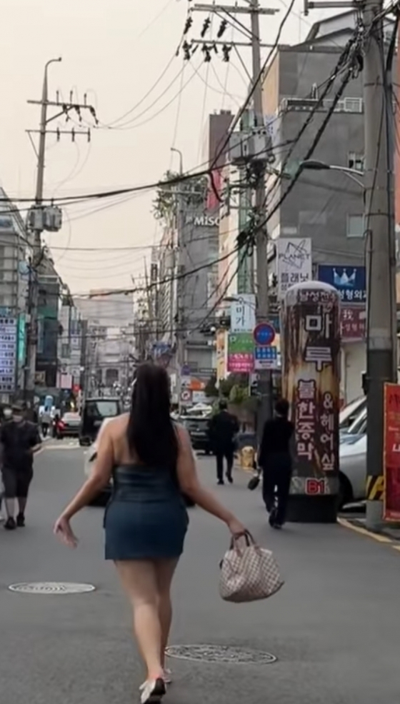 이와 함께 공개한 영상에서 박수지는 타이트한 청미니 스커트를 입고 거리를 활보하고 있다.