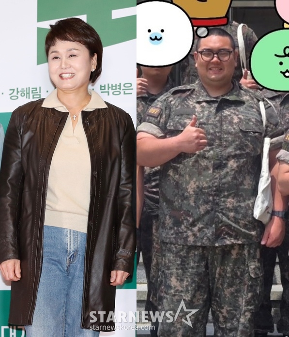 코미디언 이경실이 군 복무 중인 아들 손보승의 훈련소 사진을 공개했다.