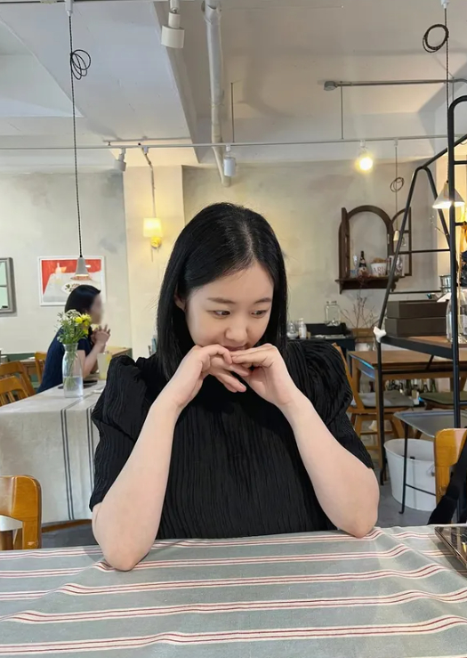그러면서 "이제 정면 사진은 못 찍겠다. 코에도 살찜. 어깨뽕 원피스 필수"라고 고충을 전하며 "몰라 누리자"라고 덧붙였다.