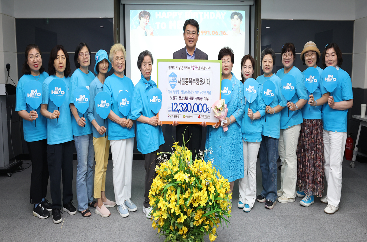 노원구는 매년 구내 거주 고등학생 및 대학생, 학교 밖 청소년, 예체능 특기 중고등학생 180명을 대상으로 장학금을 지급하고 있다. 서울동북부 영웅시대는 지난해에 이어 2회째 기부를 했다.