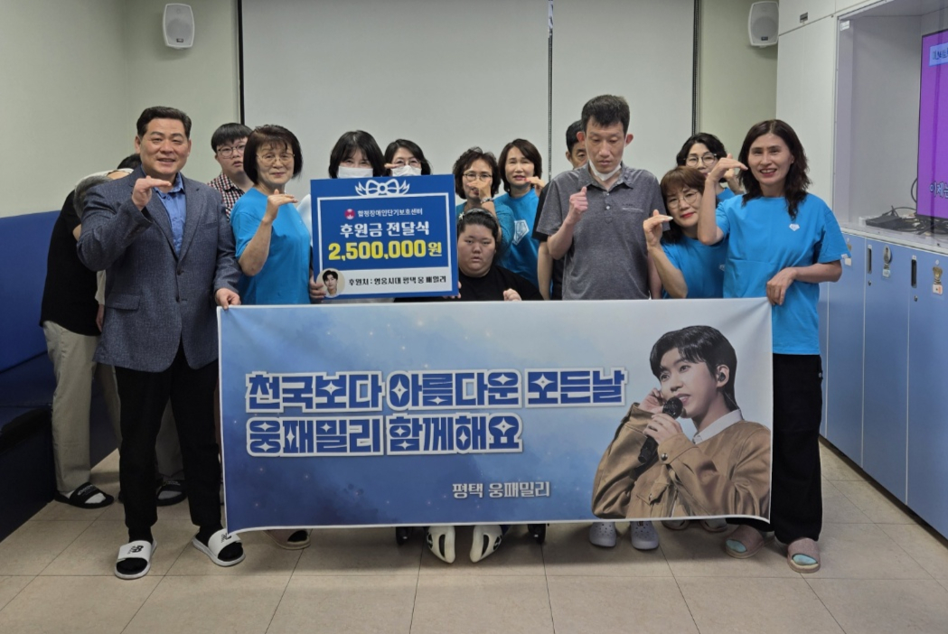 '평택 웅패밀리'는 임영웅 팬클럽 '영웅시대' 소속의 지역 모임으로, 아동복지시설과 장애인복지기관 등 다양한 사회복지 현장에 지속적인 후원을 이어오며 지역사회에 나눔 문화를 확산하는 데 앞장서고 있다.