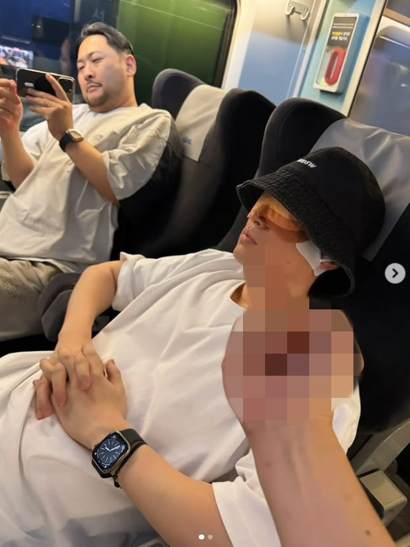 사진 속 타블로는 KTX에서 모자와 안대를 착용한 채 아무 것도 모르고 잠에 빠진 모습. 자고 있는 타블로 얼굴에 누군가가 가운데 손가락을 치켜올린 채 욕설을 하고 있고, 이 모습을 미쓰라가 촬영하고 있다.
