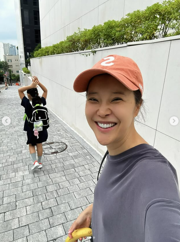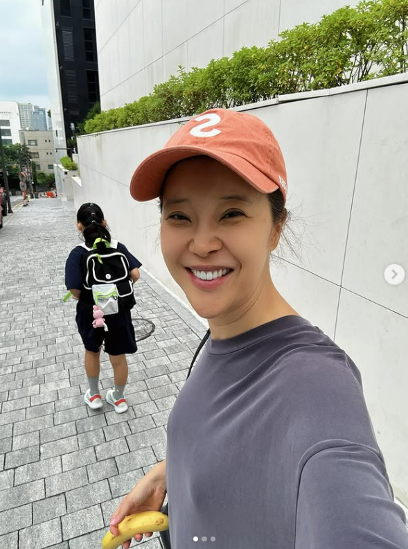 사진 속 백지영은 이른 아침부터 딸을 등교시키며 평범한 엄마의 하루를 보내고 있는 모습. 화장기 없는 수수한 옷차림에 바나나를 들고 출근하는 백지영은 카메라를 향해 환하게 웃으며 '일타맘'의 일상을 공유하고 있다.