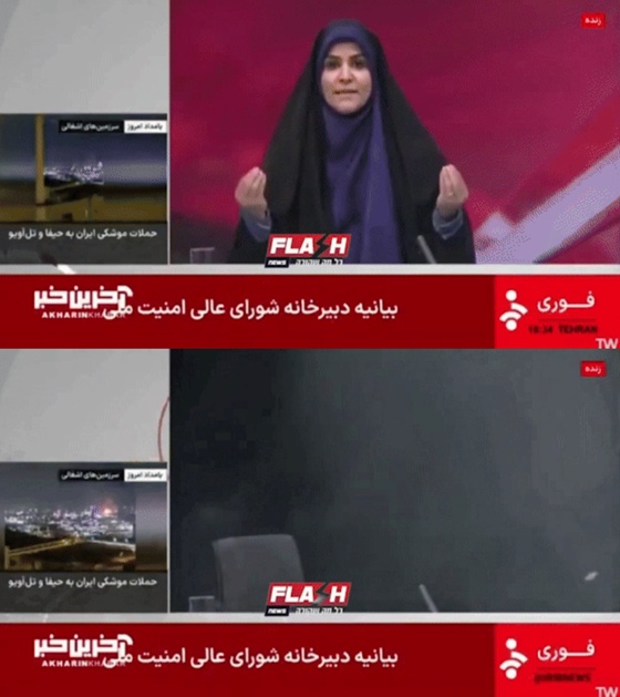 이란 국영 방송사 IRIB 본사 건물이 폭격당하는 모습이 방송을 통해 생중계됐다.
