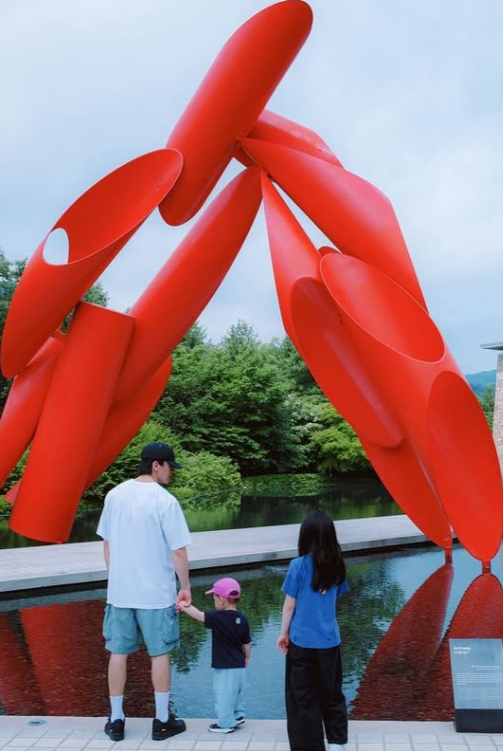 공개된 사진에는 윤승아 가족이 지인들과 함께 원주 여행을 다녀온 모습이 담겨 있다. 사진 속 윤승아 남편 김무열은 두 돌이 갓 지난 아들 김원 군과 함께 손을 잡고 박물관 건물 주위를 걷고 있다. 넓은 어깨로 듬직한 매력을 발산한 아빠 김무열과 핑크색 모자를 쓰고 씩씩하게 걸음을 떼는 아들 김원 군의 모습이 눈길을 끈다.
