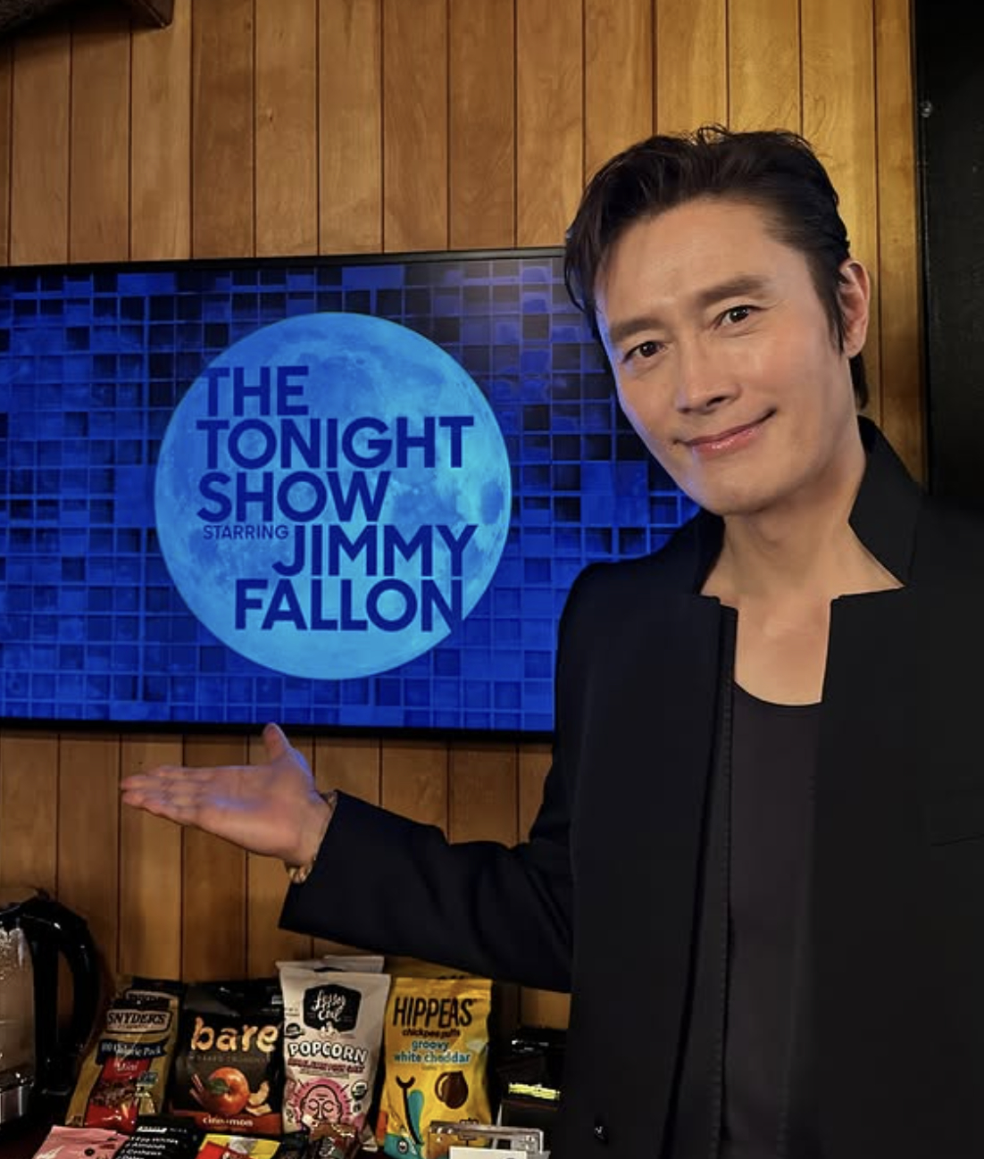 공개된 사진에는 지미 팰런쇼 로고 앞에서 지미 팰런, 황동혁 감독과 함께 포즈를 취한 이병헌의 모습이 담겼다. 또 다른 사진에서는 대기실에서 촬영한 것으로 보이는 사진이 함께 공개돼 '진짜 월드스타'의 면모를 드러냈다.