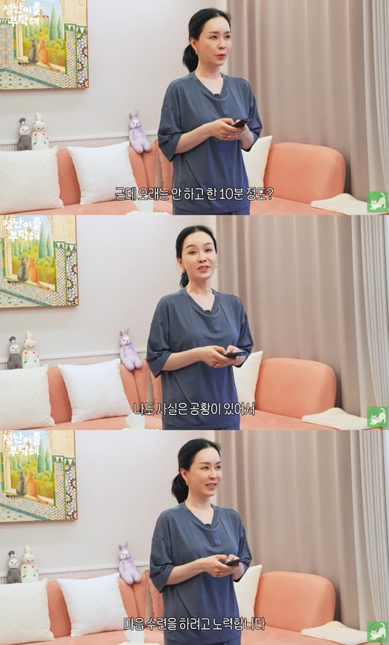 이어 김정난은 명상 시간을 가졌다. 그는 "오래는 안 하고 한 10분 정도 한다. 나도 사실은 공황이 있어서 마음 수련을 하려고 노력한다"고 털어놨다.