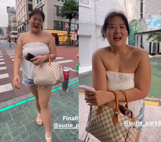 공개된 영상에는 오프숄더 상의와 핫팬츠를 착용한 박수지 씨의 모습이 담겼다.