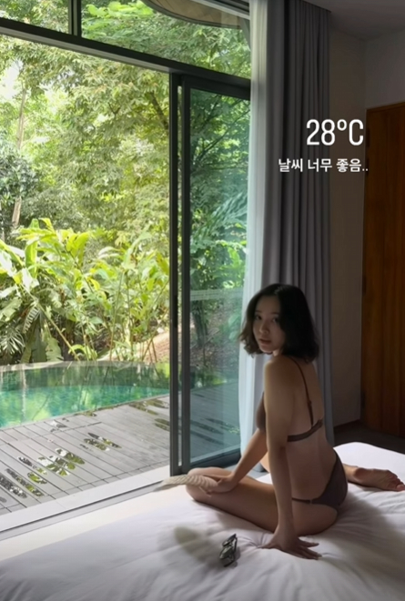 이솔이는 19일 자신의 비키니 사진과 함께 제주 숙소 공유 글을 게재했다.