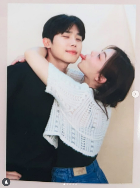 사진 속 에일리는 최시훈을 꽉 끌어안은 후 볼에 혓바닥을 내밀고 있는 모습. 에일리는 장난기 가득한 표정을 지으며 최시훈을 사랑스럽게 쳐다봤고, 최시훈은 카메라를 향해 윙크를 하며 꿀 떨어지는 분위기를 자아냈다.