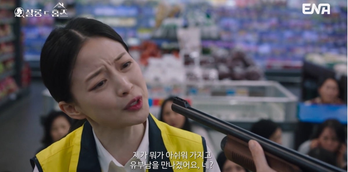 16일 방송된 ENA 월화드라마 '살롱 드 홈즈' 첫 회에선 최양희(김금순 분) 남편이자 마트 점장인 김동석(이지훈 분)의 '상간녀'를 색출하는 공미리(이시영 분)의 모습이 그려졌다.