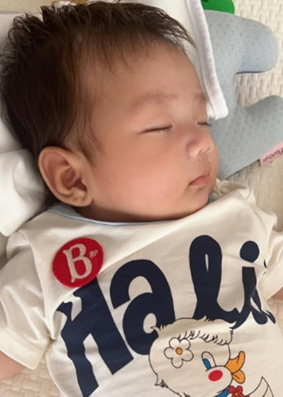 공개된 사진 속에는 딸 해이가 자는 모습이 담겼다. 자면서도 방긋 웃는 해이의 얼굴이 귀여움을 자아낸다. 무엇보다 벌써 완성형 미모를 자랑해 눈길을 끌었다.