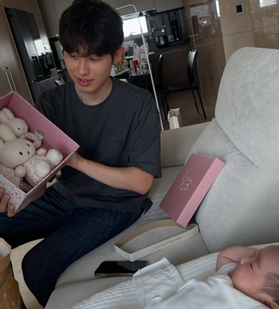 공개된 사진 속에는 생후 2개월 된 딸의 모습이 담겼다. 엄마를 닮은 큰 눈과 뚜렷한 이목구비가 눈길을 끌었다. 특히 그룹 세븐틴 멤버 부승관이 아기를 위해 노래를 부르는 모습이 공개되기도 했다.