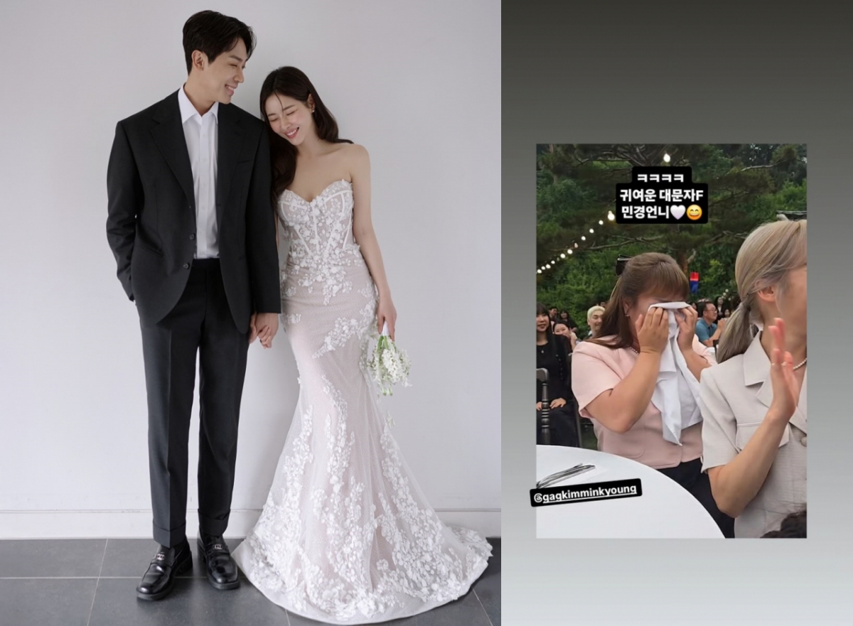 김민경은 21일 자신의 인스타그램에 "나 또 남의 결혼식에서 울었네. 하나야. 잘 살아. 너무 행복해 보였다"라는 글과 함께 사진 한 장을 공유했다.