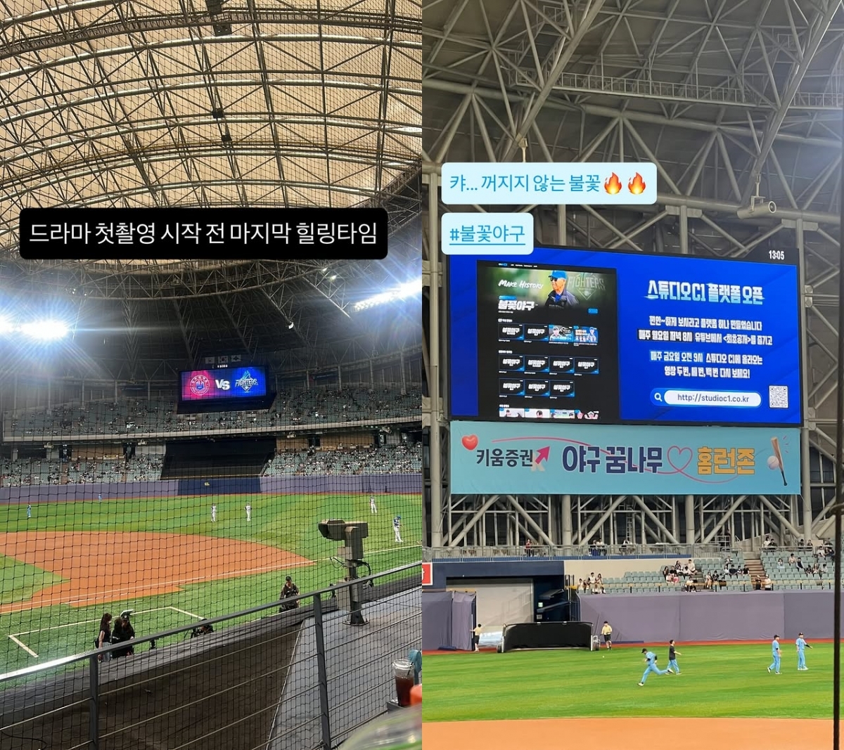공개된 사진 속에는 고척 스카이돔에 '불꽃야구' 직관 경기를 관람하러 간듯한 박신혜의 모습이 담겼다. 그는 전광판을 찍으며 "꺼지지 않는 불꽃"이라며 애정을 표현했다.