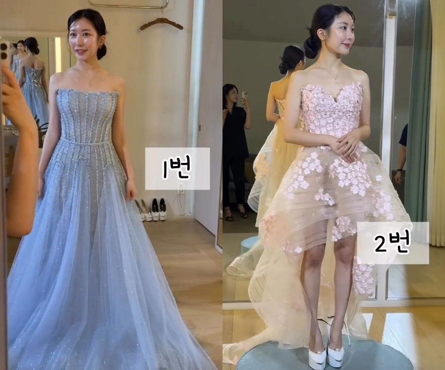 아야네는 다섯개의 드레스를 피팅한 사진을 공개하며 도움을 요청하며 "저희는 좀 대규모 돌잔치 계획이라 너무 심플해도 식장 분위기에 안 맞아서 드레스 다운 드레스를 입어야 하는 상황"이라고 덧붙여 설명했다.