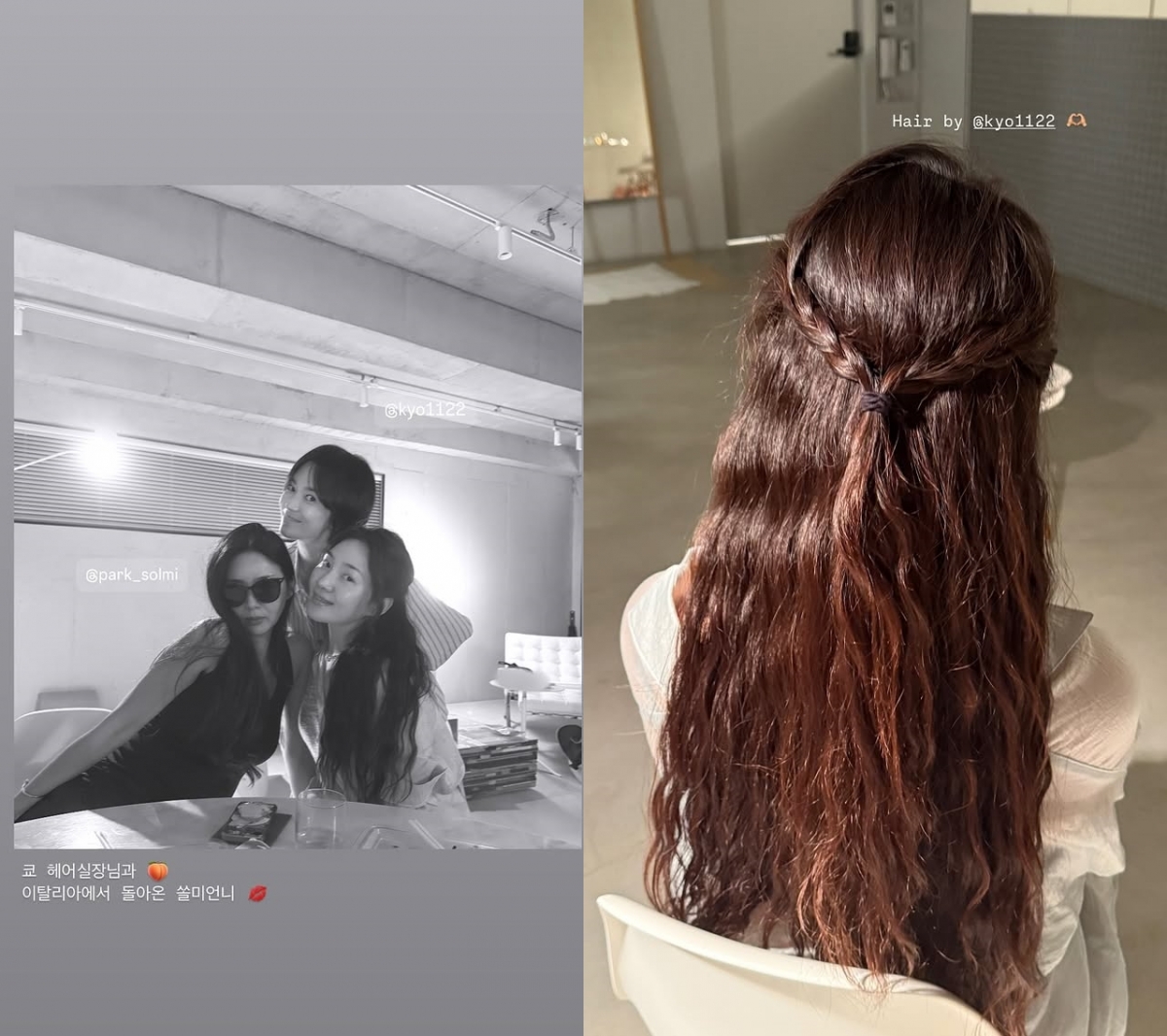 이어 최희서는 "쿄 헤어 실장님과 이탈리아에서 돌아온 쏠미(솔미) 언니"라는 글과 함께 송혜교, 박솔미와 조우한 사진을 공개했다. 세 사람은 절친한 사이로 유명하다.
