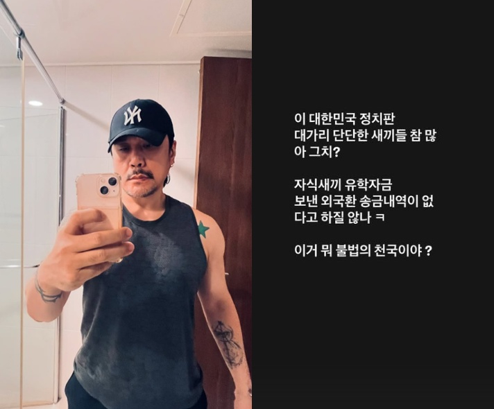 JK김동욱은 24일 "이 대한민국 정치판 대가리 단단한 XX들 참 많아 그치? 자식XX 유학자금 보낸 외국환 송금 내역이 없다고 하질 않나 ㅋ 이거 뭐 불법의 천국이야?"라며 이재명 정부 초대 국무총리 후보자로 지명된 김민석 후보자를 겨냥한 듯한 언급을 했다.