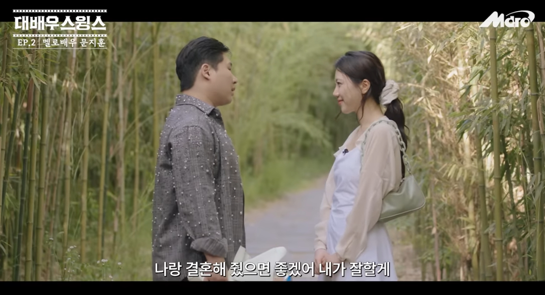이후 두 사람은 손을 잡고 대나무숲을 배경으로 감정 연기에 나섰다. 성은우가 그만 만나자며 "오빠 여사친 많은 거 힘들다"라고 했고 스윙스는 성은우가 몰래 클럽에 갔다온 걸 문제삼았다.