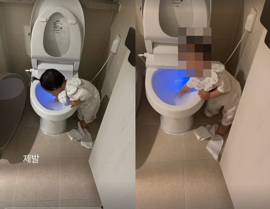 사진과 영상 속에는 황보라의 아들이 집 변기물에 손을 넣고 휘휘 저으며 신기해하는 모습이 있었다.