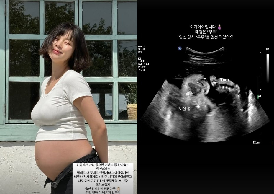 그는 또한 초음파 사진과 함께 "여자 아이다. 태명은 '무무' 임신 당시 무우를 엄청 먹었다"고 덧붙였다.