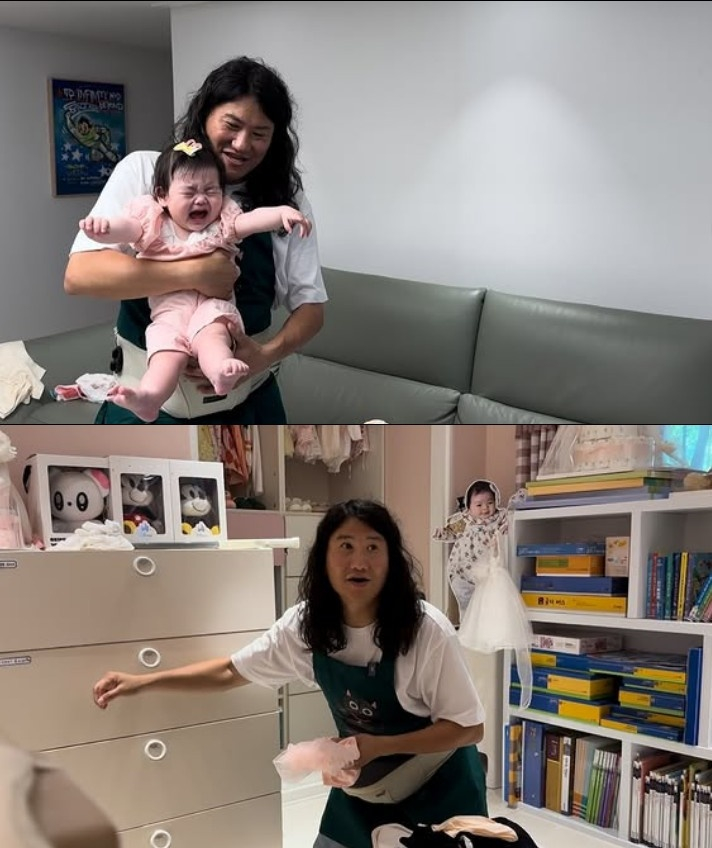 공개된 사진에는 '우일이형'으로 잘 알려진 개그맨 임우일이 박수홍의 딸 재이 양을 돌보는 모습이 담겨 있다. 임우일은 재이 양에게 책을 읽어주거나, 재이 양을 유모차에 태워 산책을 나서는 등 육아에 열중하고 있다. 트레이드마크인 긴 헤어 스타일에 앞치마를 두른 모습이 인상적이다.