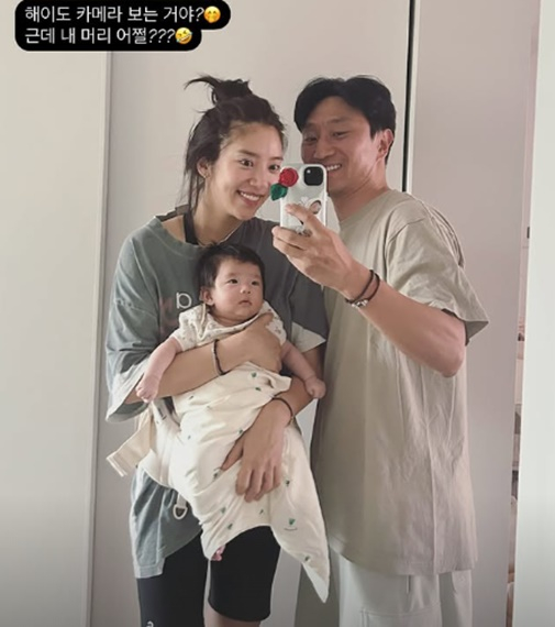 손담비는 25일 자신의 개인계정에 남편 이규혁과 딸 해이양과 함께 찍은 사진을 게재했다. 손담비는 "해이도 카메라 보는거야? 근데 내 머리 어쩔"이라고 썼다.