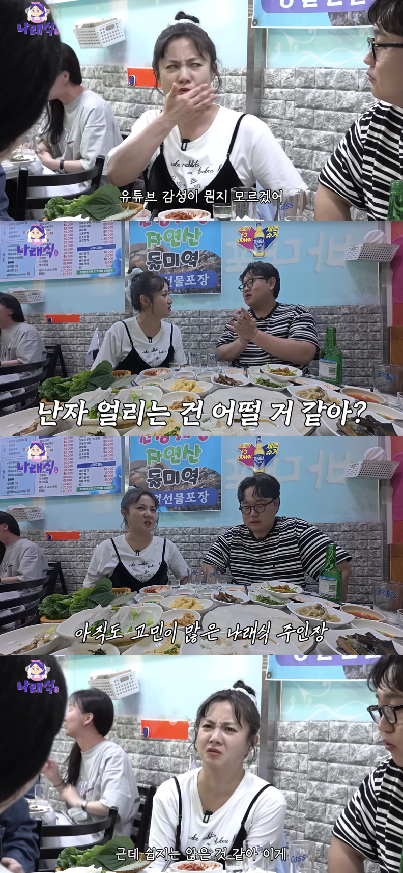 저녁에는 포차에서 8년 차 유튜버 나선욱이 게스트로 합류했다. 이 자리에서 박나래는 "아직까지도 난 유튜브 감성이 뭔지 모르겠다. 이걸 가른다는 것도 좀 그렇지만 쉽지 않다"며 채널 운영의 어려움을 토로했다.