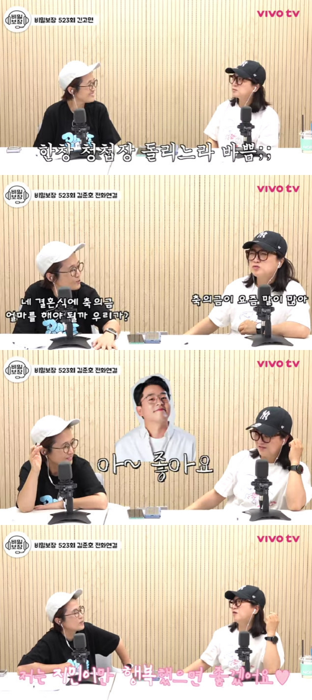 송은이는 "너만 괜찮다면 우리는 지민이한테만 축의금을 하고 싶다"고 했고, 김준호는 "좋은 생각이다. 대신 원래 생각한 금액보다 두 배 정도 부탁드린다. 1.5배도 괜찮다"고 농담하며 "저는 지민이만 행복했으면 좋겠다"고 전했다.