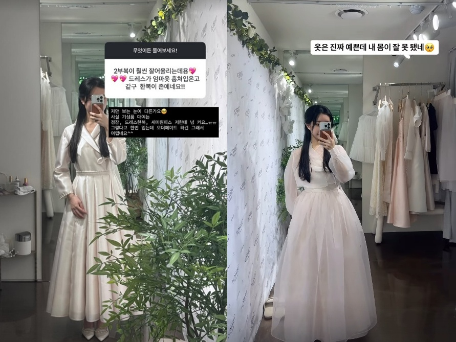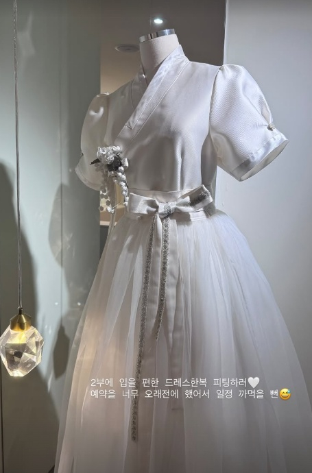 아야네는 26일 자신의 SNS에 "2부에 입을 편한 드레스한복 피팅하러♥ 예약을 너무 오래전에 했어서 일정 까먹을 뻔"이라며 사진을 올렸다.